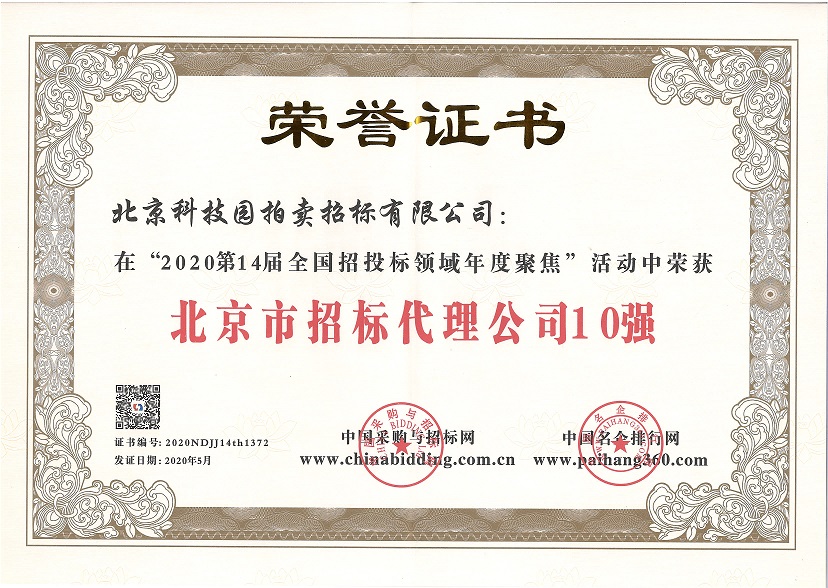 2020第14屆全國招投標領域年度聚焦“北京市招標代理公司10強
