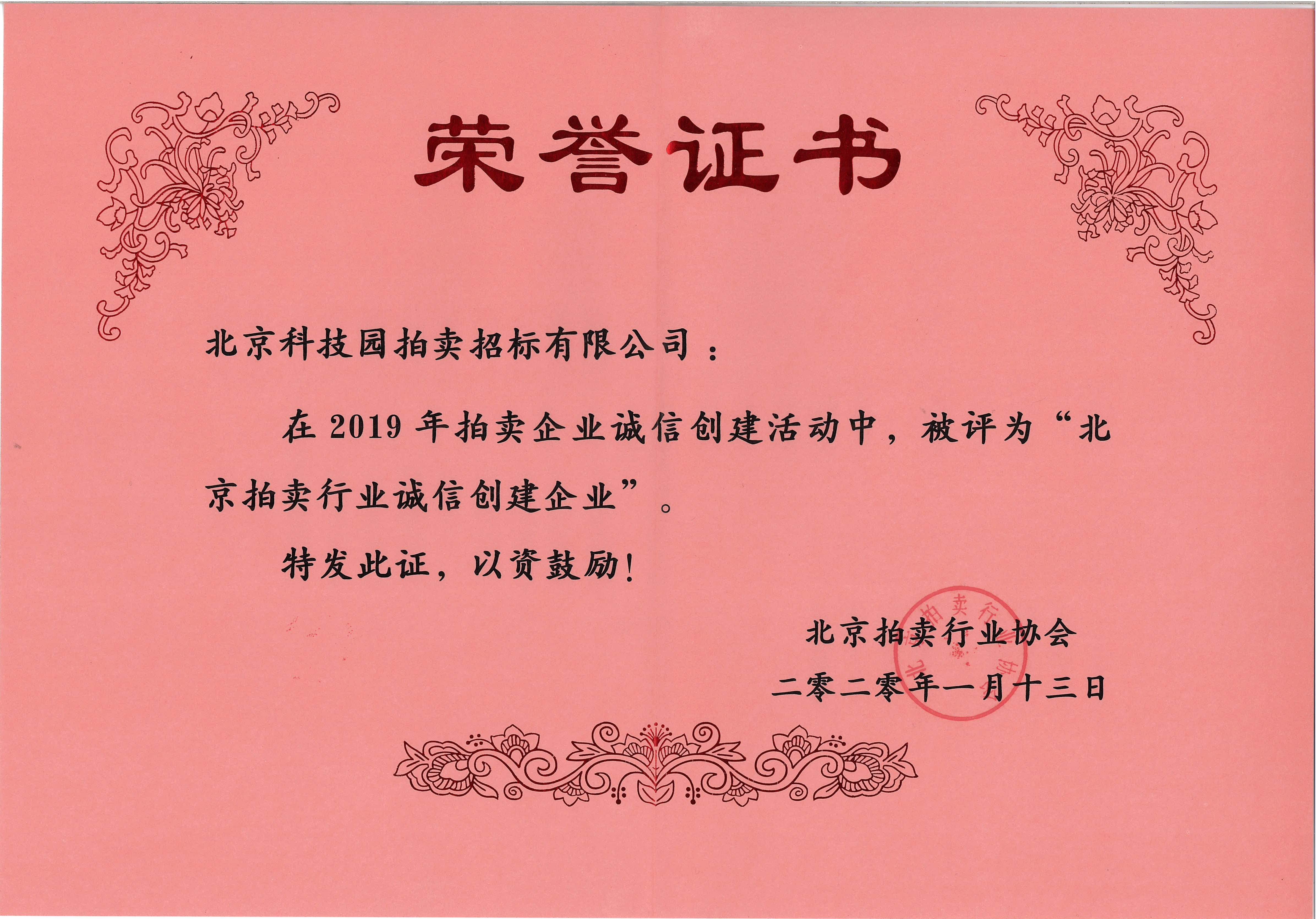 • 2019北京拍賣行業誠信創建企業