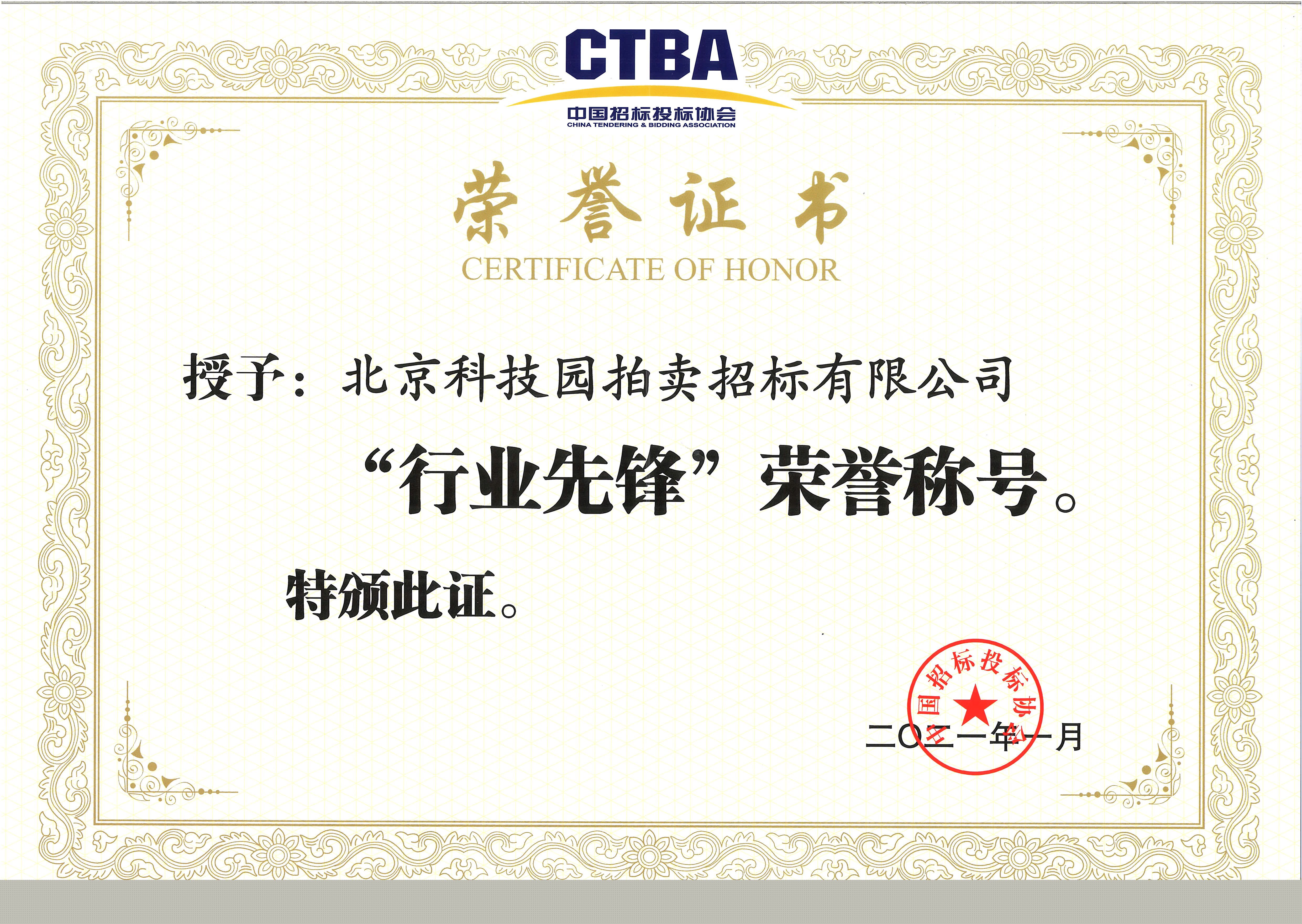 • 2021年中招協“行業先鋒”榮譽稱號