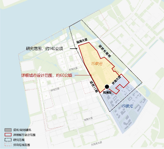 項(xiàng)目規(guī)模和設(shè)計(jì)任務(wù):本項(xiàng)目征集范圍包括詳細(xì)城市設(shè)計(jì)范圍和研究協(xié)調(diào)范圍。其中,研究范圍:包括十五、十九單元及臨海大道以北的濱海街區(qū),總面積約140公頃;詳細(xì)城市設(shè)計(jì)范圍:包括十五單元及媽灣站點(diǎn)周邊地塊,西臨媽灣二路、北至臨海大道、東接前灣水廊道,南至夢(mèng)海大道及其南側(cè)十九單元部分地塊,總面積約60公頃。
